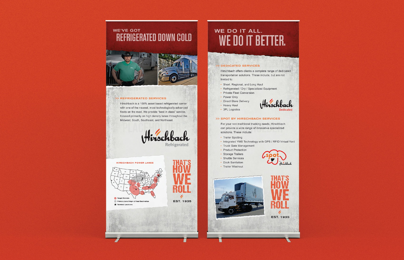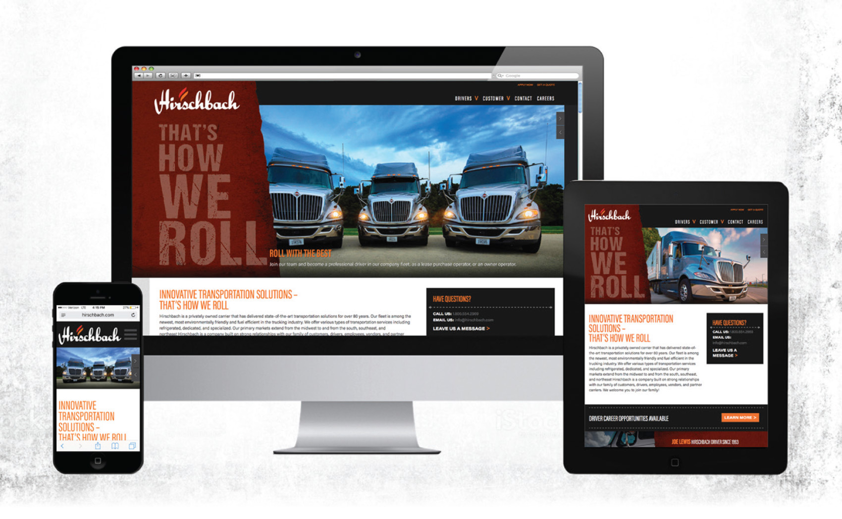 Hirschbach maintains a peerless reputation with its clients for reliable, on-time delivery and offers some of the industry's most attractive driver benefits. It also has one of the newest, most technologically advanced fleets on the road. Through spending the time to get to know our client, we quickly became aware of an underlying attitude that evoked an internal pride in the organization. Communicating this attitude would resonate with the target segment and make Hirschbach stand apart in the industry. With our new 'That's How We Roll' brand campaign, Point B was able to personify Hirschbach's superior capabilities to both potential clients and current and prospective drivers.