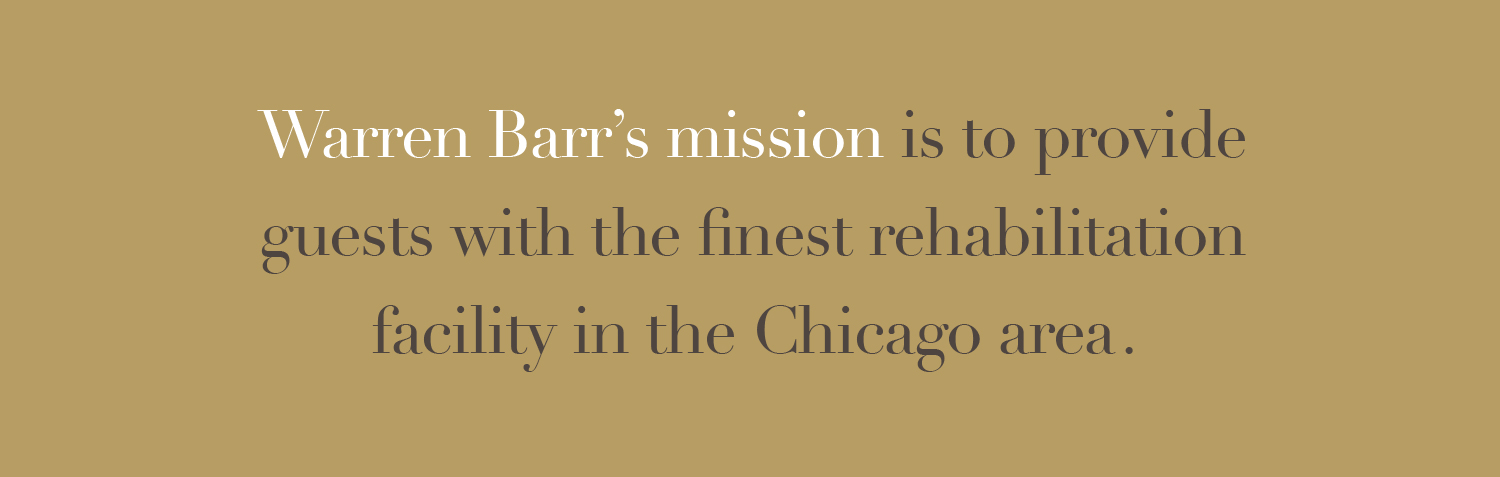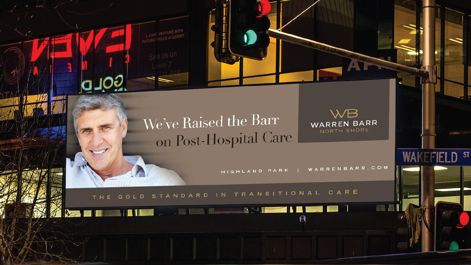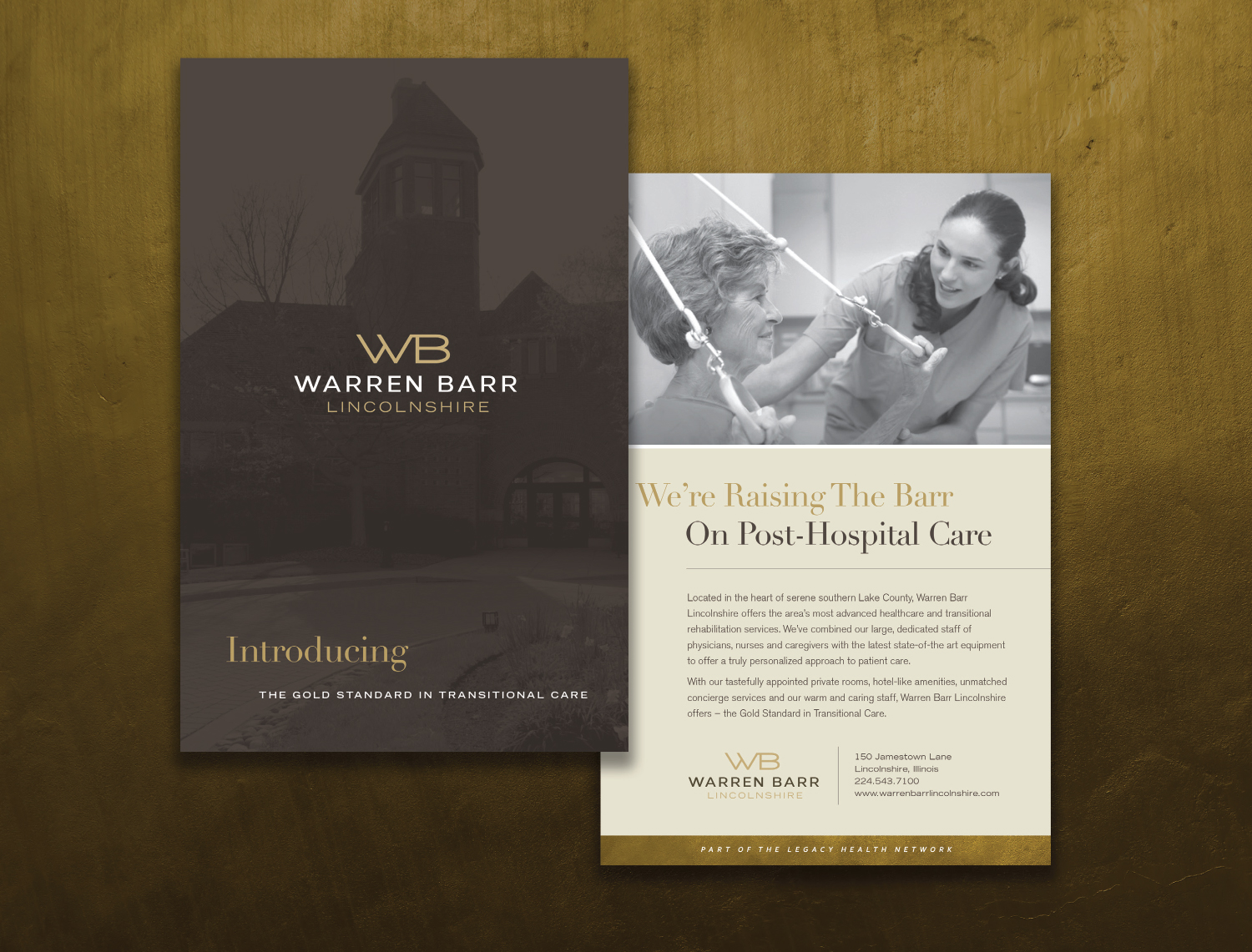 Our client, Legacy Healthcare, purchased a dated but locally well-known post-hospital rehabilitation facility with plans of turning it into the premier rehabilitation provider in the Chicago market. Point B was selected to transform the Warren Barr name into a brand that would reflect the superior level of patient care and unparalleled amenities that this newly revamped facility would offer.
